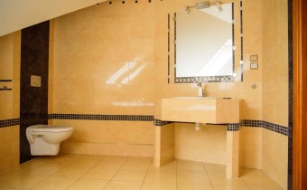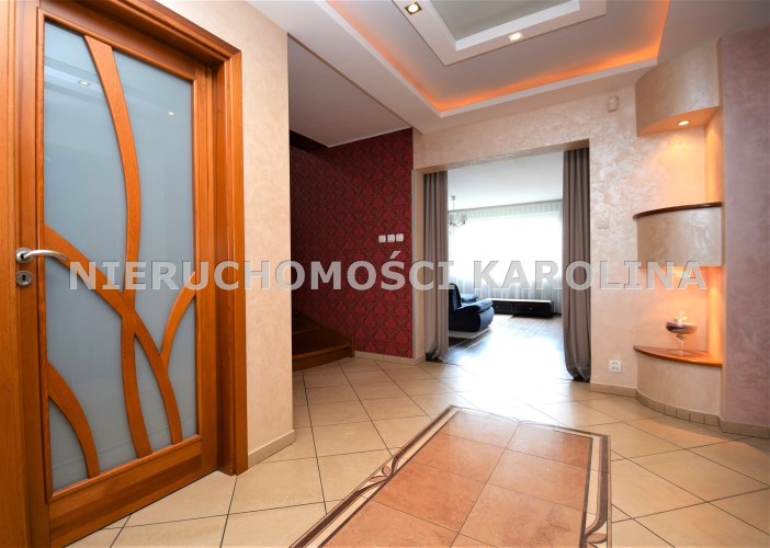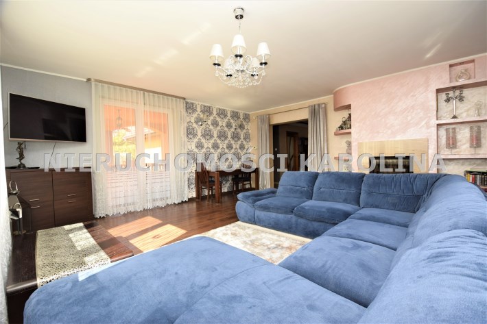 Dom zadbany i utrzymany w bardzo dobrym stanie technicznym na podłogach panele i terakota, ściany malowane, gipsowane, częściowo pokryte tapetami.