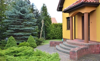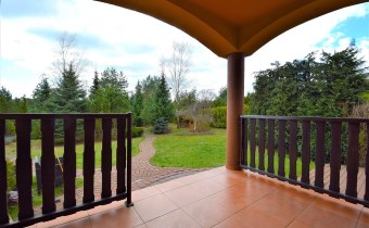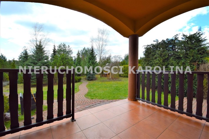 Nieruchomość posiada duży zadaszony taras z wejściem z salonu i z zejściem na ogród.