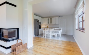 Dom parterowy z poddaszem użytkowym zapewnia wygodę i funkcjonalność w codziennym życiu. Obejmuje 158,84 m2 powierzchni użytkowej (w tym garaż), m.in. salon z kominkiem, 4 sypialnie, dwie łazienki i dwie garderoby.