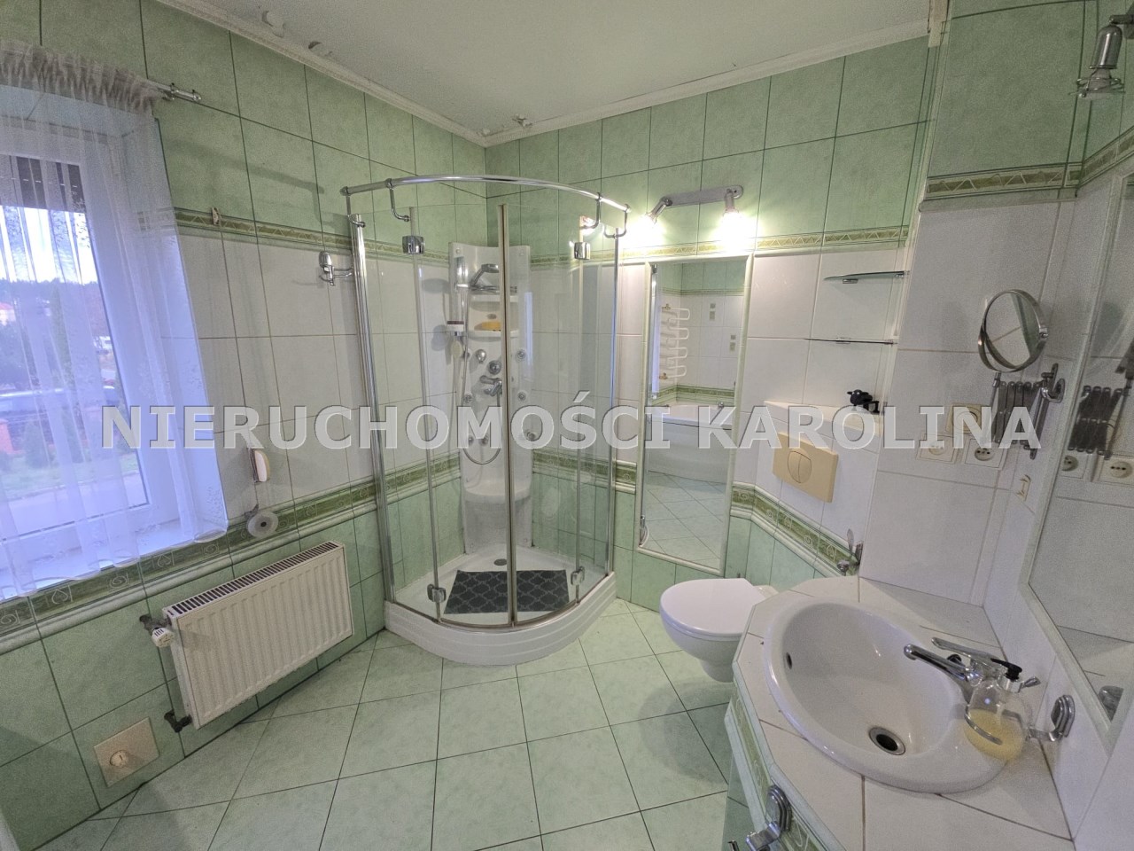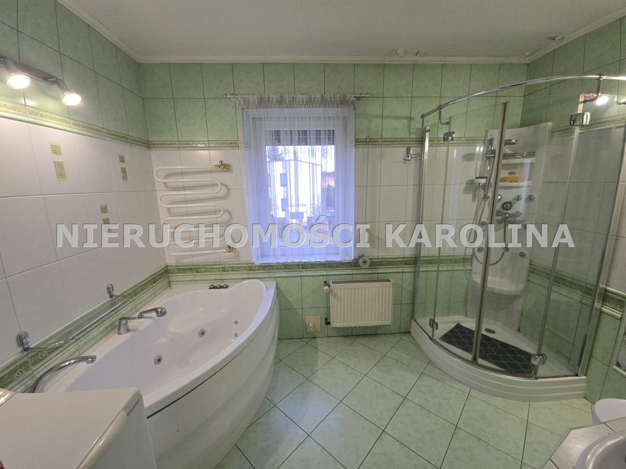 - dużą łazienka z oknem, wanna i natrysk