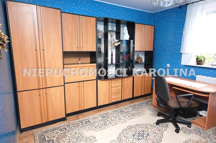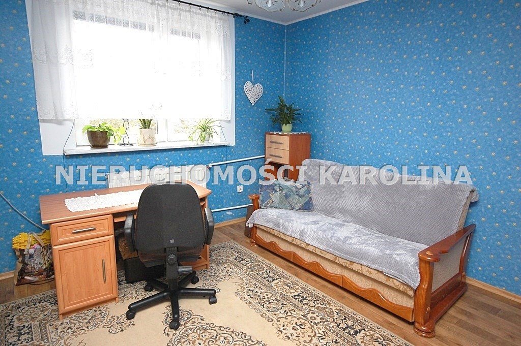 Wnętrza są przytulne, jasne i funkcjonalne, a rozkład pomieszczeń doskonale sprawdzi się zarówno dla rodziny, jak i osób pracujących zdalnie. W pomieszczeniach okna PCV, na podłogach wykładzina PCV, ściany malowane lub z tapetą. Meble kuchenne w zabudowie. Wyposażenie i meble – do indywidualnych ustaleń.