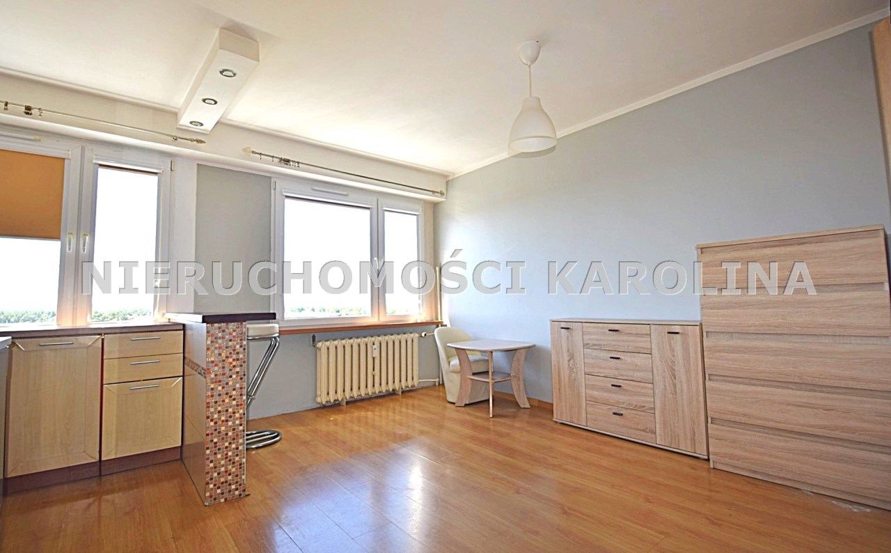 Przytulna kawalerka z pięknym widokiem na panoramę miasta.
