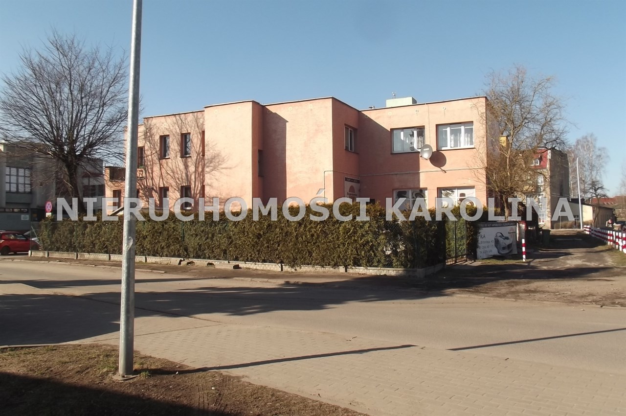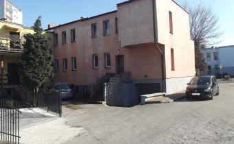 Budynek posiada cztery niezależne wejścia do części usługowej , zaplecza gospodarczego oraz wejście na klatkę schodową prowadzącą do dwóch mieszkań znajdujących się na piętrze budynku.